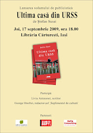 Volumul Ultima casă din URSS cuprinde în cele 200 de pagini ale sale o selecţie a reportajelor, interviurilor şi relatărilor realizate în aproape două decenii de jurnalistul Ştefan Susai, din Iaşi, despre lumea de peste Prut şi prejudecăţile care continuă să domine mentalul colectiv românesc. “În Republica Moldova, oamenii simpli caută să îşi trăiască viaţa ignorând, pe cît posibil, derapajele democratice. Dacă s-ar gândi doar la politică, atunci locuitorii a zeci de ţări, printre care şi cei din Moldova şi, mai ales, din regiunea transnistreană, ar trebui să plece. Aceste ţări ar arăta apoi ca nişte uzine părăsite”, scrie cu luciditate Ştefan Susai. Dar autorul surprinde în textele sale nu doar lumea politică, ci mai ales viaţa oamenilor simpli, cu dramele lor, cauzate în mare parte de sărăcia cruntă, dar şi micile bucurii. Titlul, Ultima casă din URSS, e doar una dintre cheile acestei selecţii de articole. Este povestea lui Grigore, un moldovean care nu a acceptat niciodată să se mute din casa sa modestă, de la graniţa cu România, prin spatele căreia curge Prutul. Trece clandestin frontiera încă din 1964 şi păstrează amintirea deportării în Siberia. Prefaţa cărţii este semnată de Mihai-Răzvan Ungureanu, fost ministru de Externe, actualul şef al Serviciului de Informaţii Externe al României: “Volumul nu este o descriere statică, nu este un tablou, ci o suită de imagini, unele pitoreşti, unele cutremurătoare, disparate în timp, piese ale unui puzzle destul de complicat, de neînţeles pentru unii dintre noi. Este o imagine vie, vibrantă a Republicii Moldova şi, poate paradoxal, atemporală. Efectele oscilaţiilor strategice şi ezitărilor politice ale autorităţilor de la Chişinău se resimt în fiecare pagină a volumului, în fiecare colţ al ţării, de o parte şi de alta a Nistrului. Tensiunea din regiunea separatistă este constantă, apăsătoare.” Ştefan Susai s-a născut în Iaşi în 1971. A absolvit Facultatea de Drept, dar s-a îndreptat către jurnalism. În perioada 1994-1996 a fost reporter şi editor general la Radio Contact, în 1997 s-a alăturat echipei de la Radio Nord Est Iaşi. În acelaşi an a început colaborarea cu BBC. Din 2004 până la finele anului 2008 a fost director al biroului din Iaşi al RFI. Între 1999-2004 a colaborat cu postul TV Antena 1. Din 2007 până în 2009, a colaborat cu Tele ’M, având propria emisiune, „Iaşiul în direct“. A mai colaborat cu „Jurnal de Chişinău“, al cărei corespondent la Moscova a fost în 1999. Din 2000 este corespondent al Agenţiei France Presse. În 2004 a fost trimis al RFI şi AFP în Transnistria, pentru a relata despre atacul regimului de la Tiraspol asupra şcolilor româneşti. A fost reţinut sub acuzaţia de „spionaj“ şi eliberat, după ce a promis că va părăsi teritoriul autoproclamatei RMN. A mai publicat reportaje despre Republica Moldova în „Suplimentul de cultură“, „Dilema Veche“ şi „Opinia Studenţească“. A beneficiat de numeroase specializări în jurnalism la Centrele de Jurnalism din Bucureşti, Chişinău, Opatija, Sofia şi Varşovia. Alte informaţii despre volum şi autor pot fi găsite pe blogul cărţii, ultimacasadinurss.blogspot.com (Z.I.)